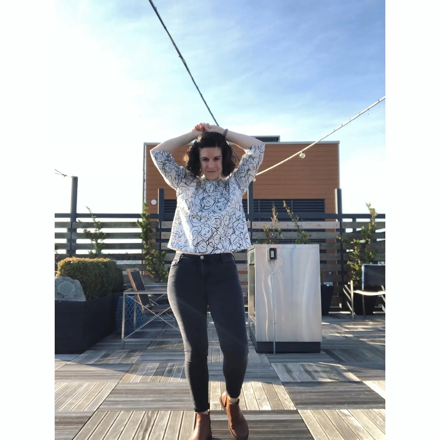 Me, posing in a femme print shirt that I wish was more representative of all women but definitely leans white. Me, navigating what it means to be intersectionally feminist, queer, and domestic all at the same time.